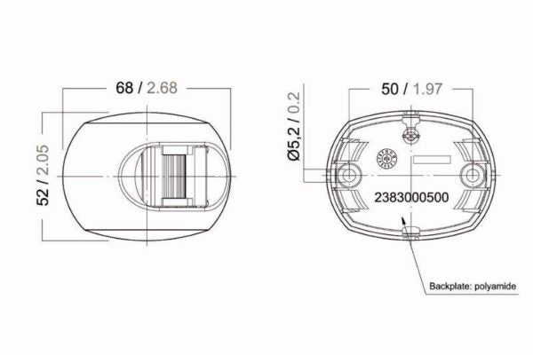 - Produktblad – Teknisk informasjon babord hvit: 34-PORT-1224-V-WHITE-SIDE-MOUNT
