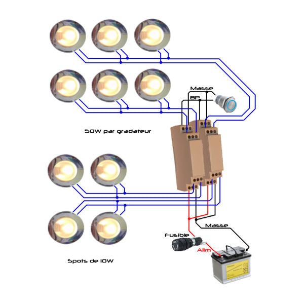 Styres via trykkbryter. Flere dimmere i paralell kan styres av samme bryter.