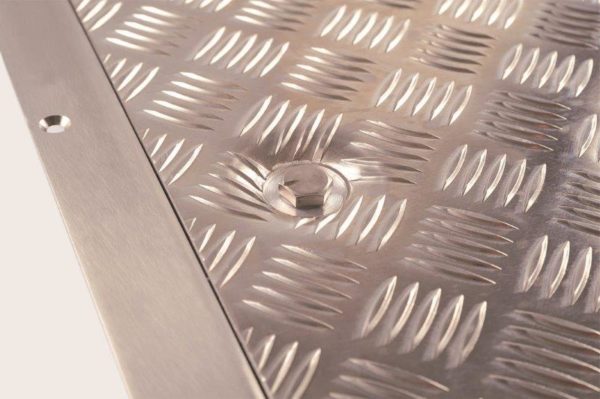 - Produsert i «1/4″ marine grade 5086″ anodisert aluminium med 1/8» rustfri stålramme.