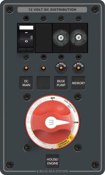 - – 1 hovedbryter 6011 for to batteribanker (slår begge batteribankene av og på samtidig og ved nødstart kan batteribankene kobles sammen)