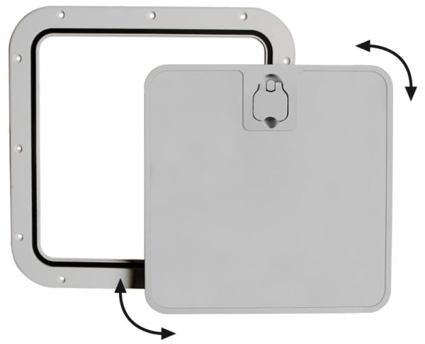 - Luke med avtakbart lokk for skottrom i båt, for skott med elektriske installasjoner, for oppbevaringsrom, for bokser til oppbevaring av ang og fisk etc.