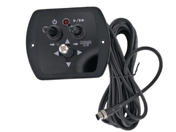 Leveres med fjernkontroll og kontrollpanel med joystick (innendørs montering).