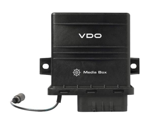 VDO Marine MediaBox kan monteres bokstavelig talt overalt på båten. Lytt til radio og værmeldinger med den innebygde AM / FM-tuneren eller koble til en MP3-spiller via USB eller Bluetooth-smarttelefon for å nyte favorittmusikken din. MediaBox er NMEA 2000®-sertifisert og kan brukes med VDO Marine AcquaLink ™ og OceanLink ™ TFT-skjermer. I tillegg tilbyr VDO Marine et gratis VDO Marine MediaBox-app for smarttelefonen din slik at MediaBox kan brukes som en frittstående radio.