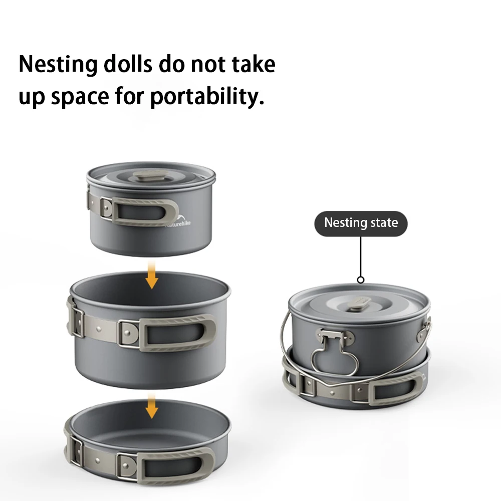 Brand: NaturehikeModel: CNK2450CF010Style: 7 Inch Frying Pan/8 Inch Frying Pan/0.8L Kettle/1L Pot/1.7L Pot/3L Pot/3L Hanging PotWeight: 195g/228g/191g/200g/296g/410g/406gSizes:...