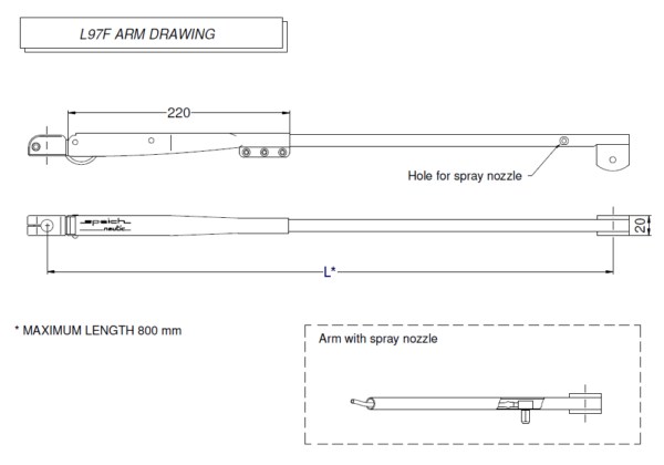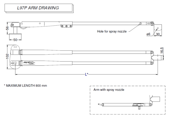 22 15 76 L97P.ZZ Dobbel arm Rusfritt stål AISI 316 Fra 500 mm til 800 mm (med dyse)